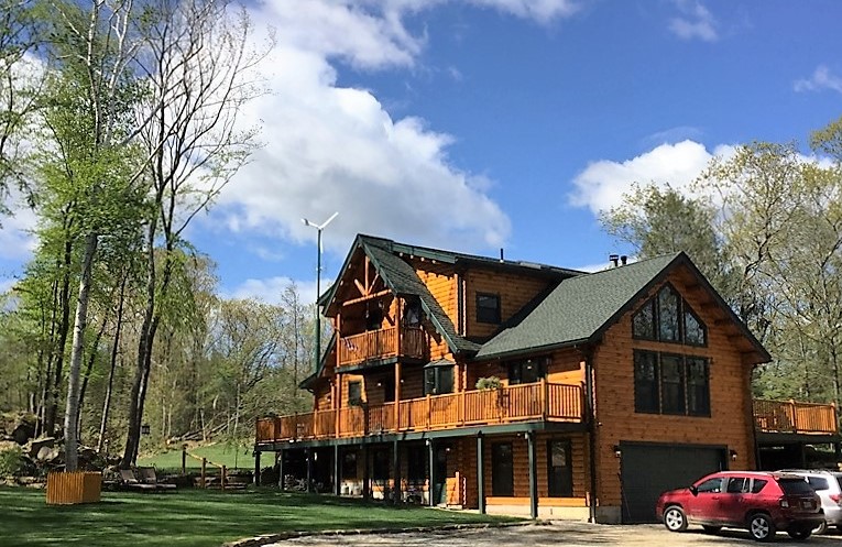 We are perhaps the only fully off-grid Log Home B&B in New England, powered entirely by the Sun and the Wind! The only "wire" connecting us to the outside world is nearly a mile of fiber-optic cable to deliver high speed internet to the facility. Our 12,000 watt solar array provides for all the comforts of a grid-tied home - just with no electric bill at the end of the month!